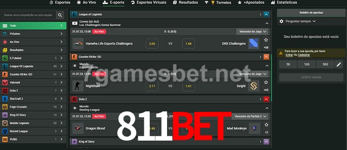 O 811bet oferece uma grande seleção de opções de apostas em e-sports com probabilidades competitivas